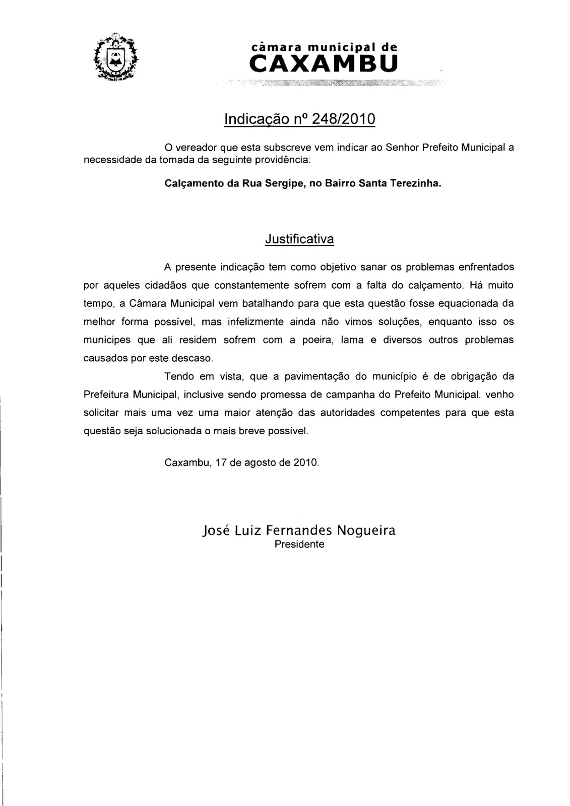 "Aproveitemos a existência da fábrica de bloquetes em nosso município para minimizar os problemas que esta falta de pavimentação causa a todos, tanto na questão social quanto material", finaliza o Presidente Vereador José Luiz, autor de uma indicação de pavimentação da Rua Sergipe, no Bairro Santa Terezinha. Veja nas fotos abaixo a situação desta rua.