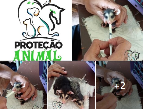 Fui chamado por uma amiga para socorrer dois filhotes de gambá, que foram encontrados por um rapaz, onde a mãe estava morta com outros 3 pequenos, e apenas esses dois estavam vivos.
